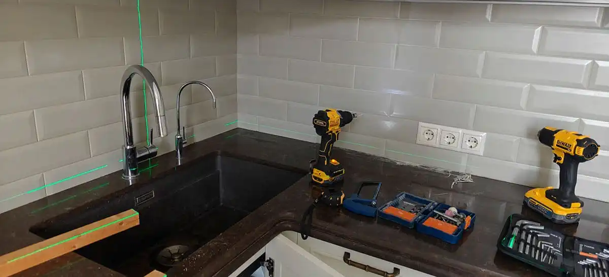 - Установка столешницы по уровню и эпоксидная затирка