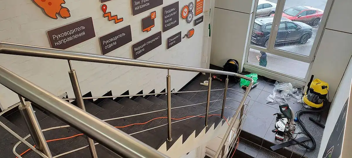 - Установка плинтусов из алюминия на лестничных пролетах