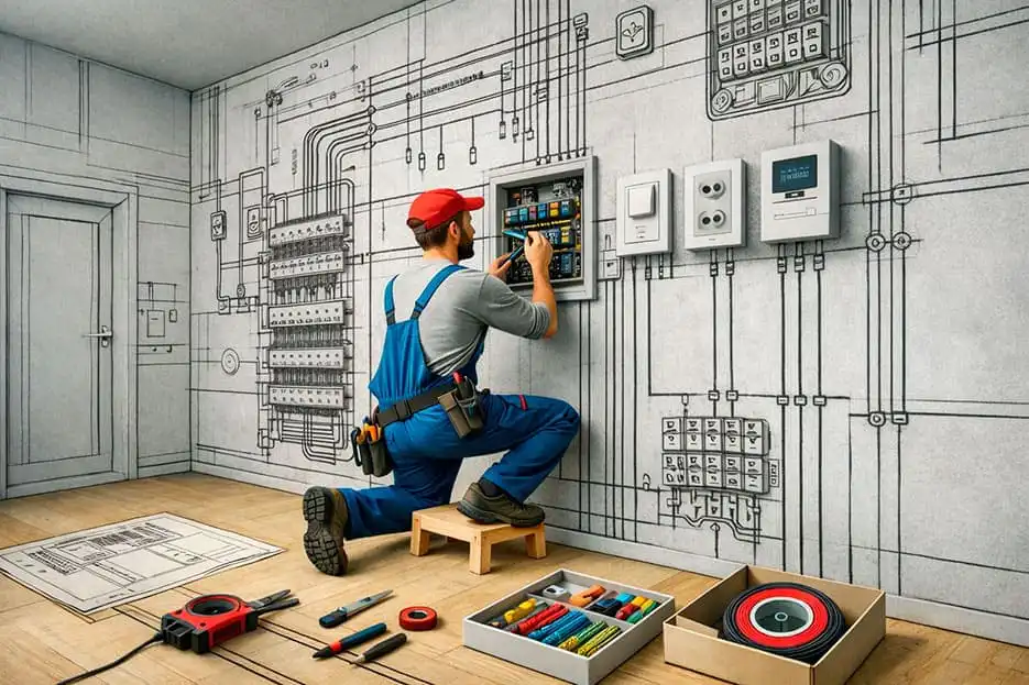 Оказываем профессиональные услуги электрика в квартирах, частных домах, офисах и коммерческих помещениях. Выполняем электромонтажные работы любой сложности — от замены розетки до полной разводки электрики под ключ.